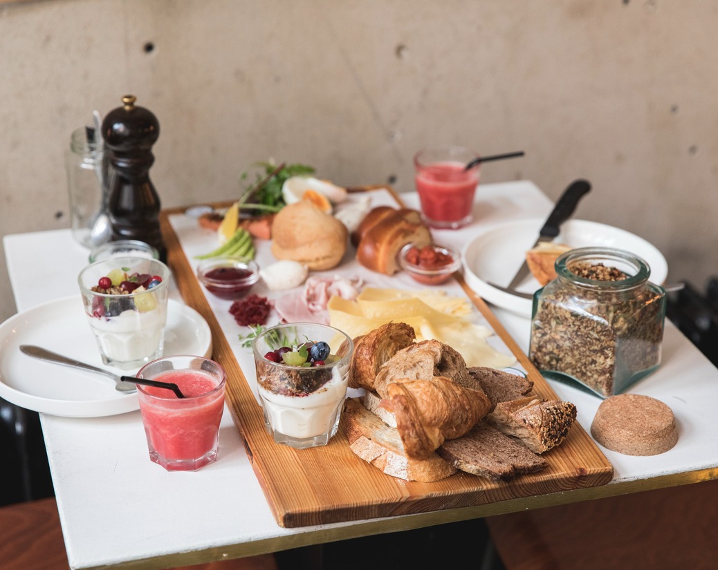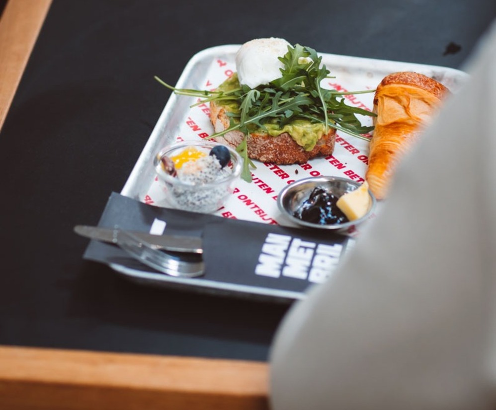 Ook bij Social vind je de perfecte combinatie van zoet en hartig op je ontbijtplank, waarbij hun zelfgemaakte granola de yoghurt met fruit wel helemaal afmaakt. Daarnaast krijg je zuurdesembrood met ham, kaas, ei en een vers croissantje met boter en jam. De echte zoetekauw kan hier ook terecht voor het bananenbrood ontbijt, waarbij je deze samen krijgt met de yoghurt met fruit en granola en een jus d’orange.