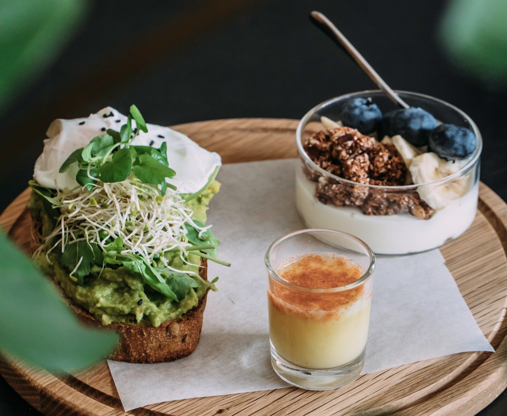 De kaart bij ROAST is klein maar fijn, want heeft ook hun breakfast board op het menu. Deze ontbijtplank biedt alles wat je nodig hebt om je dag goed te starten, beginnend met de gembershot die je erbij krijgt. Daarna kun je genieten van een toast met avocado, gepocheerd ei met sesamzaadjes en yoghurt met granola en vers fruit.