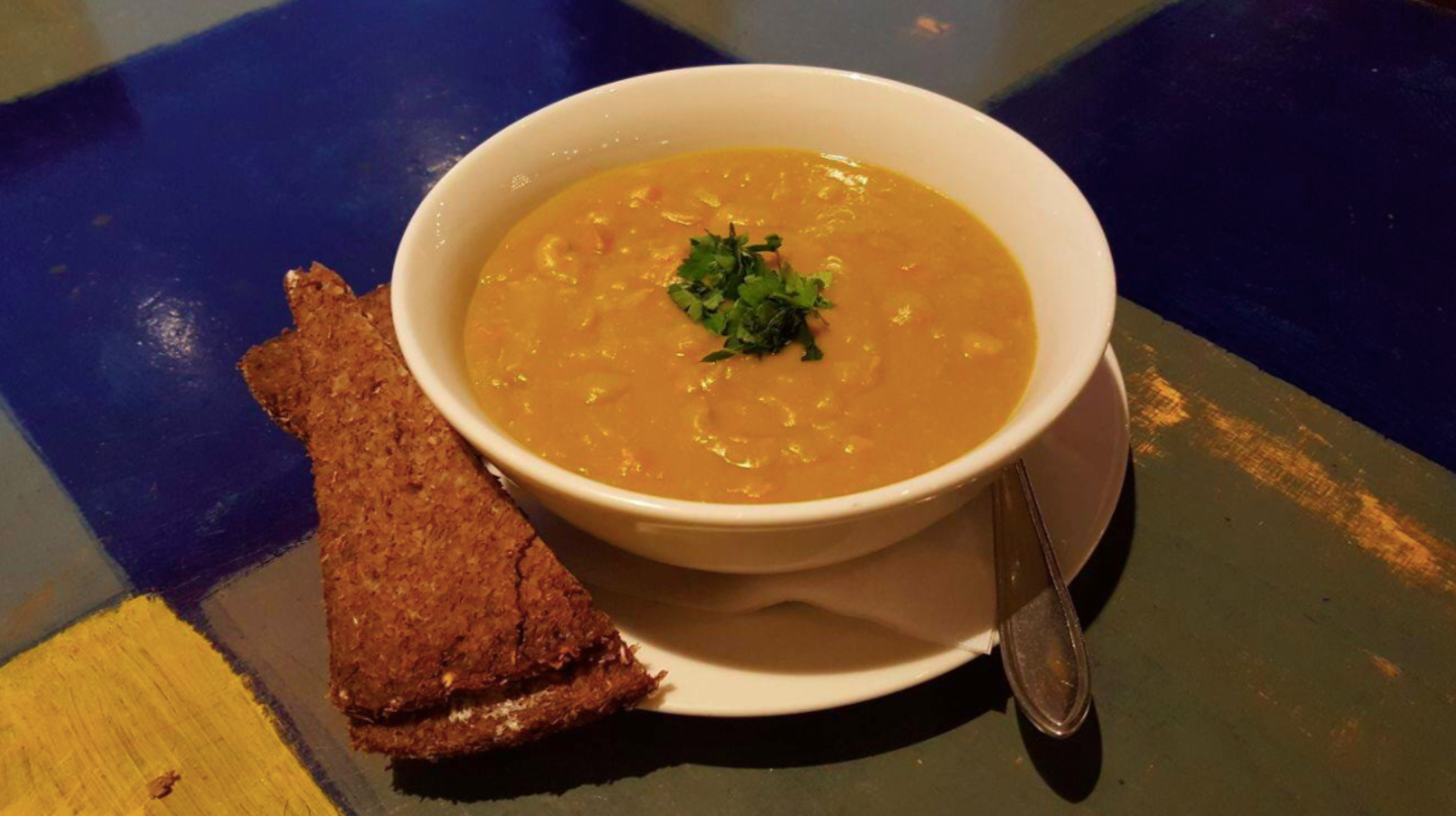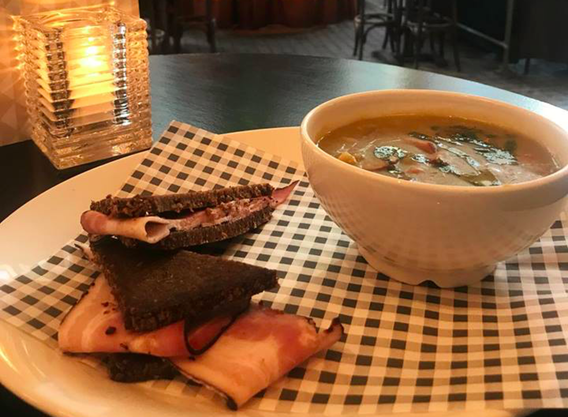 We komen er niet alleen graag voor taart, bij Dudok serveren ze ook het winterse soepje. Dit soepje is, zoals ze zelf zeggen, ‘Het beste medicijn tegen het koude weer’. Erbij wordt roggenbrood met katenspek geserveerd.
