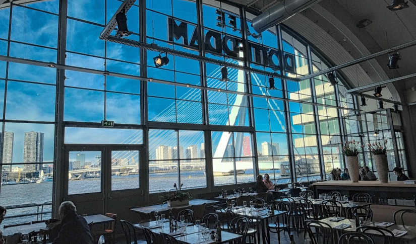 Lekker eten zonder poespas doe je bij Café Rotterdam. Een internationale kaart en gerechten vol van smaak. Door het enorme raam kijk je uit over de haven, terwijl je geniet van bijvoorbeeld kabeljauw met groene kool. Borrelen kan ook, onder het genot van lekkere bites.