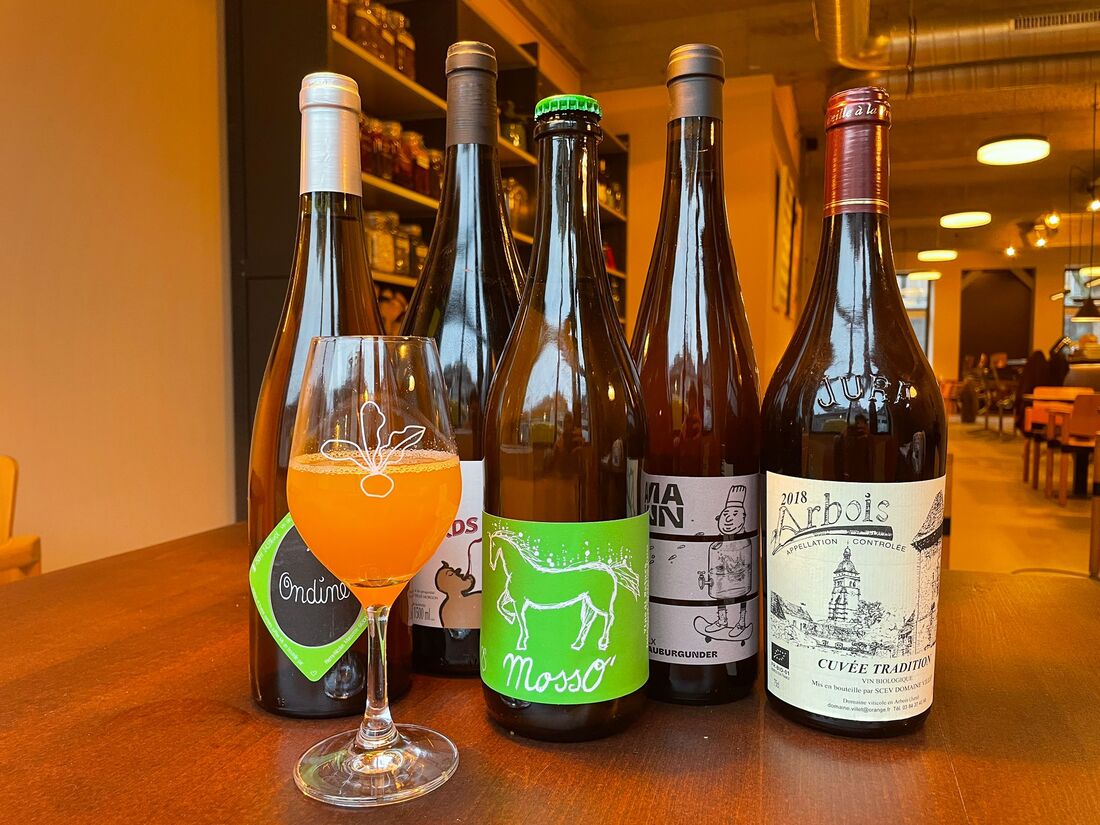 Bij OX is niets te gek en dat geldt zeker ook voor de natuurwijnen. Met meer dan zestig wijnen op de kaart, waarvan meer dan de helft natuur, kan ieders smaakpapil verzadigd worden. Voor de kenners of de nieuwsgierige wijndrinker heeft OX een intrigerend assortiment aan oranje wijnen zoals de Hüpnos van Sous le Vegetal (zie bovenstaande foto), of een uitgesproken witte wijn als de Graf Morillon van Weingut Maria & Sepp Muster.