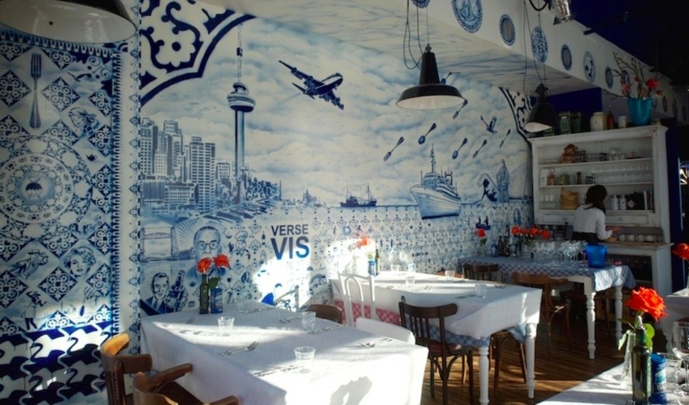 Misschien niet ieders smaak, maar bijzonder is het interieur van De Matroos en het Meisje wel. Je vindt deze markante eetlocatie in het foodwalhalla van Rotterdam: Katendrecht. De een noemt het ouderwets en oer-Hollands, wij noemen het retro en hip. Op de muur roepen kreten zoals ‘verse vis!’ je toe en het Delfts blauw overheerst (zacht gezegd). Bij De matroos en het Meisje eet je wat te pot schaft, maar wel van het hoogste niveau!