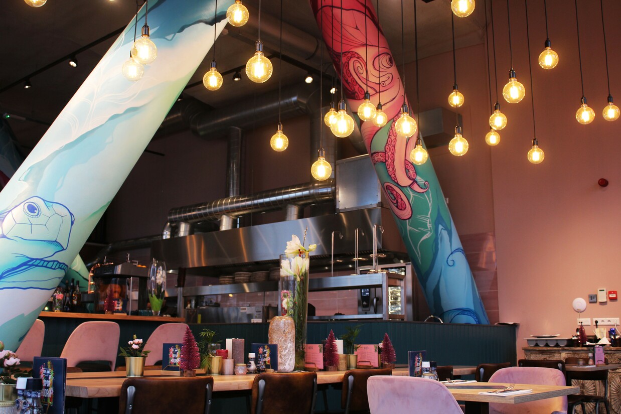 Over kleurrijk gesproken, dan moet je ook even langs bij By Ami. De zaak zelf, de gerechten en de gins zijn allemaal één groot palet van verschillende tinten. Niet alleen de cocktails en gins zijn kleurrijk, maar ook de roze matcha koffie is echt een aanrader; tsja, het oog wil ook wat. Daarnaast houdt eigenaar Ahmed graag rekening met milieu. Zo schenkt hij biologische wijnen en worden de dranken niet met plastic rietje geserveerd. Levert bij ons extra punten op.
