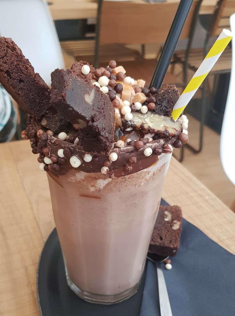 Trek in een koude shake, dan moet je even een kijkje nemen bij Chocolate Company Café. Voor hun smaakvolle reuze milkshake is echt niets te gek. De shake is gevuld met koude chocolade, plus een van de andere smaken (zoals karamel, koffie, kokos etc). Daar bovenop kun je kiezen uit een groot aantal toppings, zoals cheesecake of brownies die zij er in zijn geheel op doen. Een flinke maaltijd dus, en een vrolijke, fotogenieke smaakexplosie. Die summerbody komt later wel!