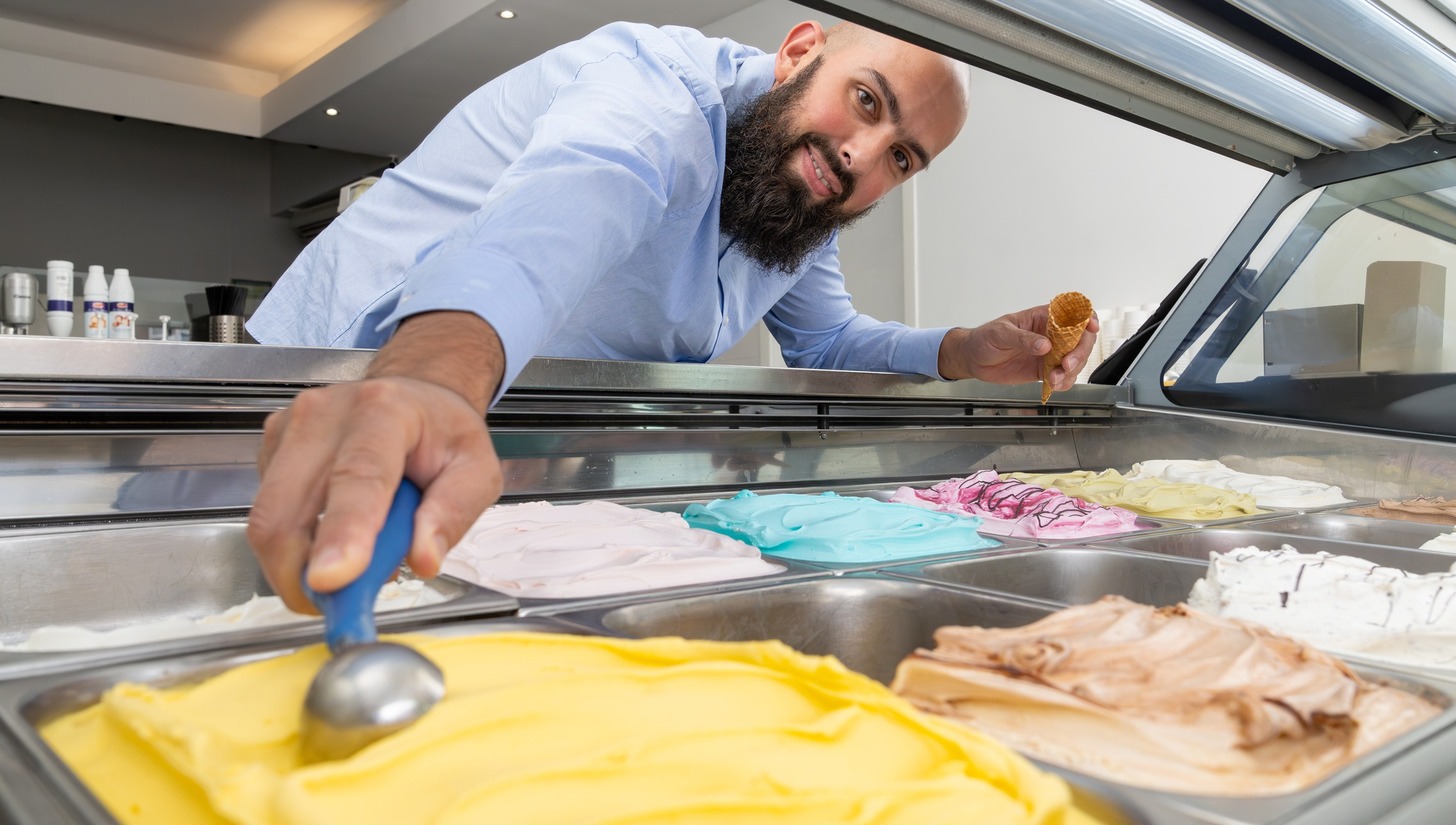 Antonino, geboren in Calabrië en opgeleid door ijsmaker Robin Alting, draait zeven dagen per week met zichtbaar plezier. Het ijsaanbod is een mix van klassiekers en bijzondere smaken zoals groene thee of Hugo met prosecco en munt. Bestel je er een espresso bij, dan krijg je die gewoon in een eetbaar wafelkopje.