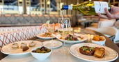 Bij Bar Blink schijnt de zon de hele dag door de hoge ramen, en natuurlijk op het terras aan de Wijnhaven. Met meerdere niveaus, en een overterras met prachtige ligging aan het water, is het de ideale plek om de hele dag door te brengen. Nou komt dat heel mooi uit, want je kunt er van 's morgens vroeg tot 's avonds laat genieten van heerlijke Mediterrane gerechten en cocktails. Tip: kom 's ochtends vóór 11 uur voor Koffie Happy Hour.
