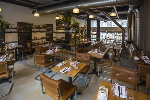 Op de eerste verdieping komen lange zitbanken, vierpersoons booths en losse tafeltjes. Desgewenst kunnen ook groepen van zo'n twintig mensen op die etage gescheiden eten van de andere gasten. Met verrijdbare wandkasten wordt dan een afgesloten restaurantgedeelte gecreëerd. Vloeren en meubels zijn net als de bar van gerecycled hout, alles zelf aangelegd en vervaardigd door Pepijn en zijn team van Eendracht. Dat clubje verhuist ook in zijn geheel mee van de Eendrachtsweg naar de Schiedamse Vest. Sous-chef Remco wordt compagnon in de nieuwe zaak, Ward is gepromoveerd tot restaurantmanager.