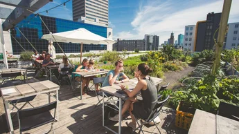 We hadden het al eerder over de woensdaglunch op het dak van het Schieblock, bij het Hofplein, met uitzicht op een dakakker vol groenten en kruiden. Maar dat was in december en nu is het beter toeven op het terras en ontspruit er van alles op die akker. Elke woensdag van 12.00 tot 15.00 uur bereidt Valerie Kuster er lekkere kleine lunchgerechten (€ 4,50 per stuk). Ze werkt samen met Renzo van Riemsdijk van koffie Lokaal.