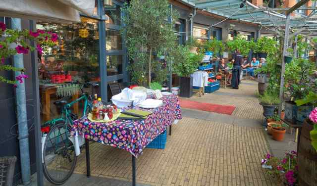 Tot slot: heet De Olijventuin ook zo omdat er sprake is van een tuin? 'Ja, en een die er wezen mag. Hij is weliswaar betegeld, maar de grote potten met olijfbomen en ander groen geven je wel degelijk het gevoel in een stadsoase te zijn beland. Vooral onder de overkapping van het restaurant, met uitzicht op de Nieuwe Binnenweg en de Lage Erfbrug, is het heerlijk zitten.
