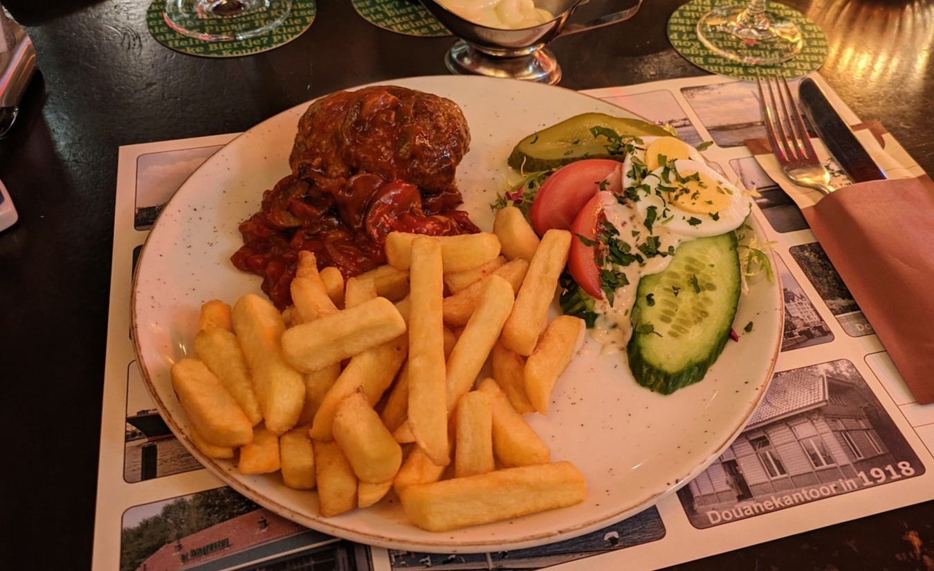 Maar we komen hier natuurlijk niet voor het bier, maar voor de ballen. Overigens staan er ook andere gerechten op de kaart, zoals biefstuk met champignons of een kippetje van de grill. Daarnaast staat er elke dag een dagschotel op het krijtbord bij de bar.