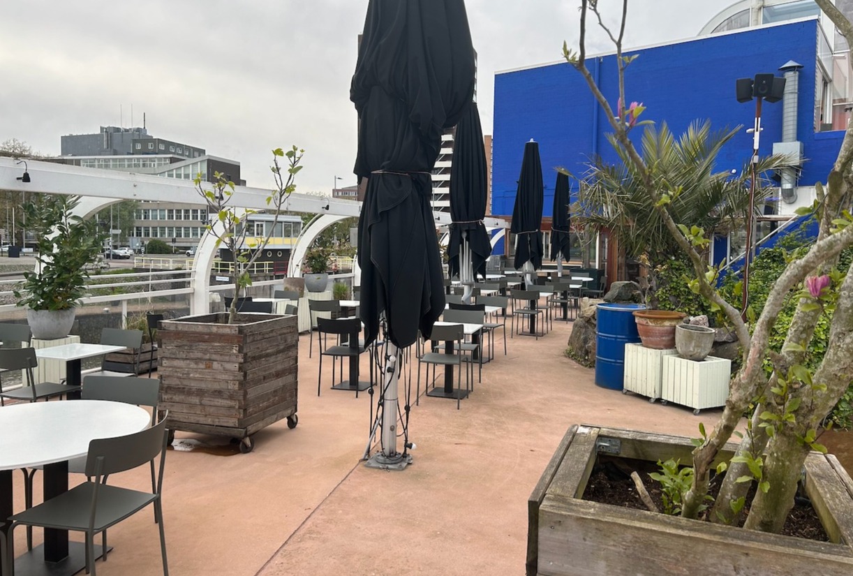 Op de dinerkaart is het dus nog even wachten, maar je kunt nu al genieten van de circulaire borrelhappen en drankjes op dit iconische terras, met uitzicht over de Maas. En voor de geboren en getogen Rotterdammer: als je er dan toch bent, kun je meteen wat jeugdherinneringen ophalen met een rondje door de dome of wildwaterbaan.