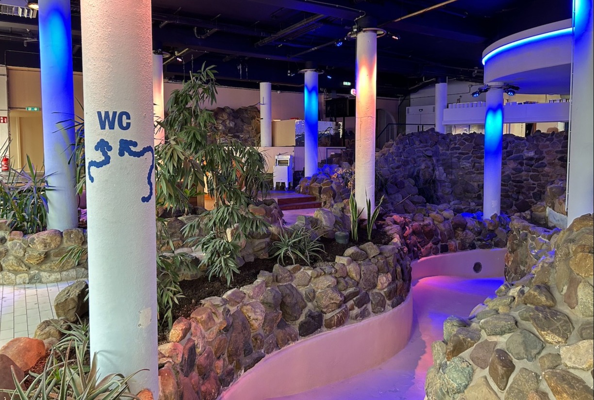 En ook bij binnenkomst is het nog onmiskenbaar Tropicana. Zo kun je er nog steeds wandelen door de oude wildwaterbaan. Wel heeft het interieur een lik blauwe verf gekregen en zijn er nieuwe zitjes te vinden. Daardoor voelt het fris en ruim, zonder dat het afbreuk doet aan de oude glorie.