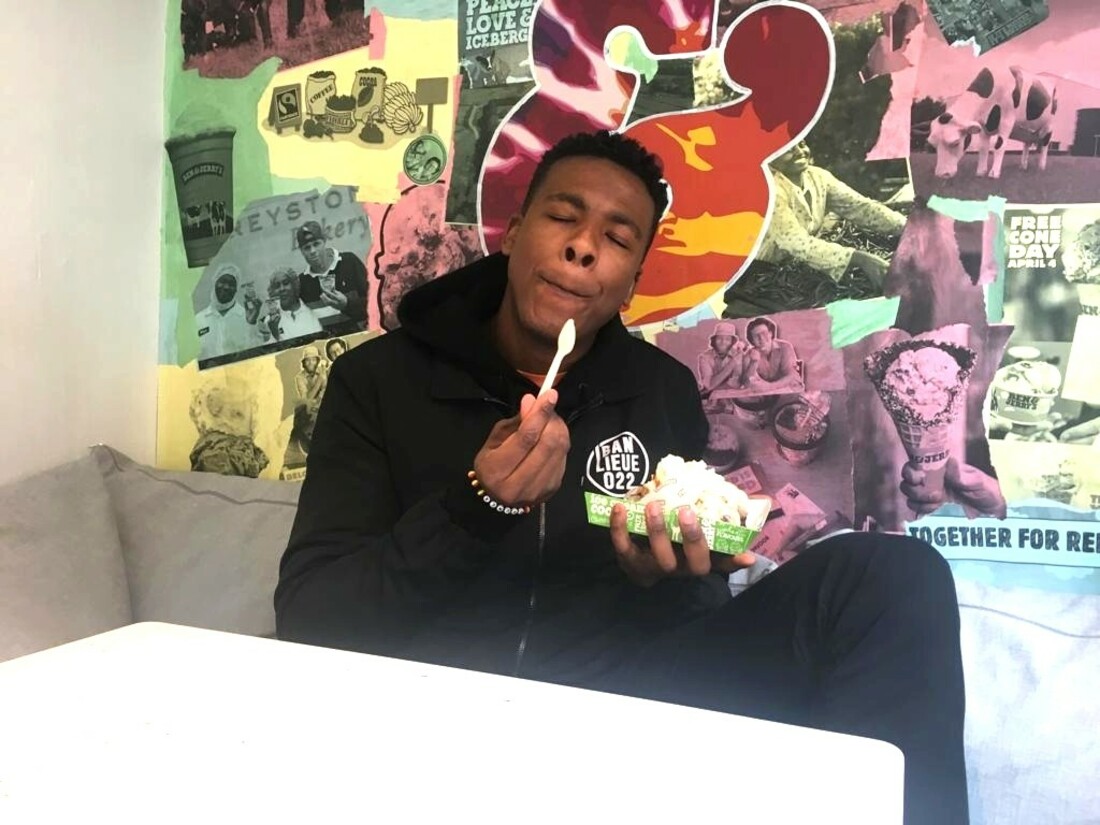Met gefrituurde Oreo’s en buttermilk chicken op het menu van zijn eigen zaak Who this Freddy’s is er nog weinig waar Quincylino van opkijkt. “Ben and Jerry’s is een Amerikaans bedrijf en ik volg veel Amerikaanse trends, ik kijk wat daar poppin’ is. Tegenwoordig verbaast niets mij meer, maar ik blijf wel enthousiast en benieuwd naar nieuwe dingen. Het allerleukst van eten vind ik dat je alles kunt combineren. En hier kan dat: je krijgt niet alleen ijs, maar ook een brownie én saus én slagroom. Dat is toch sick.”