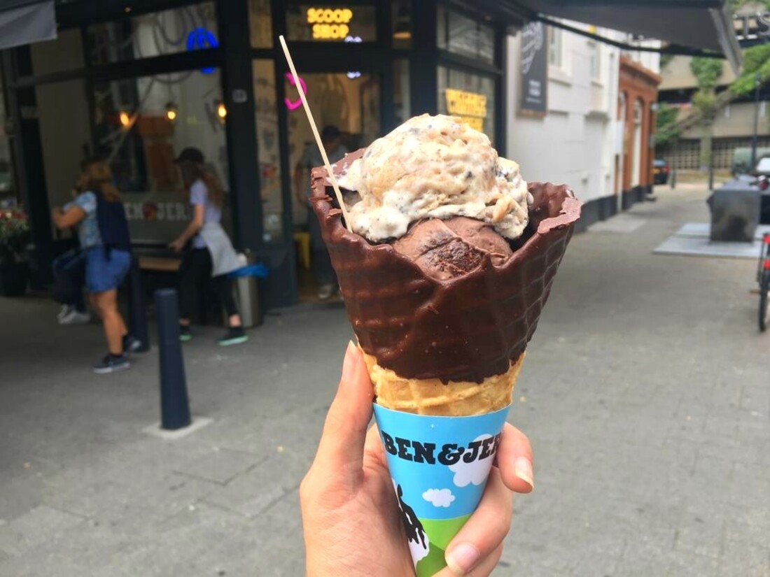 De Ben and Jerry’s Scoop Shop op de Witte de Withstraat is de enige in Nederland. Je haalt er niet alleen je favoriete Ben and Jerry’s scoops, maar ook exclusieve smaken die niet in de supermarkt verkrijgbaar zijn zoals Peanut Butter Cup en Cherry Garcia.. Mix en match erop los met handgemaakte brownies, Luikse wafels, chocolate chip cookies of zelfs in een chunk shake: een milkshake met chocolade chunks, sprinkels, diverse sauzen een flinke toef slagroom én afgetopt met brownies. De Luikse wafels en Waffle Cones worden gebakken in de ijswinkel zelf, de rest is afkomstig van de Bakkerswerkplaats in Katendrecht. Kakelvers en (h)eerlijk met een bakkie pleur van Heilige Boontjes erbij.