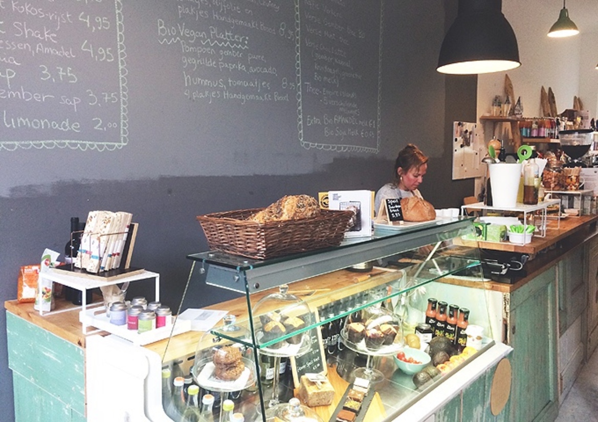 Bio Bodega is bijna anderhalf jaar open en blijkt een succesverhaal; dagelijks zit het bomvol rond lunchtijd, want health food is hip. Salades, goede broodjes, verse smoothies en sapjes, allemaal met biologische ingrediënten en er zijn volop vegetarische en zelfs een paar veganistische opties.  Ook voor gezonde zoetigheid zit je hier goed; de vitrine staat er vol mee. Verder kun je biologische en/ of lokale producten kopen in het mini-marktje. Kortom: Bio Bodega is (h)eerlijk.