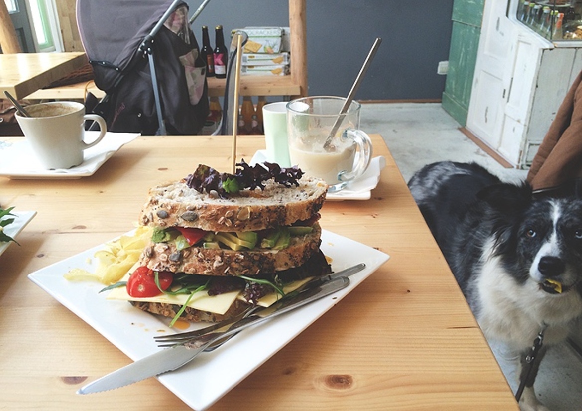Ik vraag Claudia of ze zelf vegetariër is, maar dat is niet zo. Wel zegt ze uiteraard veel met gezond eten bezig te zijn en ziet ze een duidelijke trend in health food en vegetarisme in Nederland. Ze stelt ook dat steeds meer mensen helemaal geen dierlijke producten meer willen eten en dat ze daarom de ‘vegan platter’ op de kaart heeft gezet. Een broodplankje met allerei soorten plantaardig beleg, zoals hummus en pompoenpuree. Daar ga ik snel nog eens voor terug.