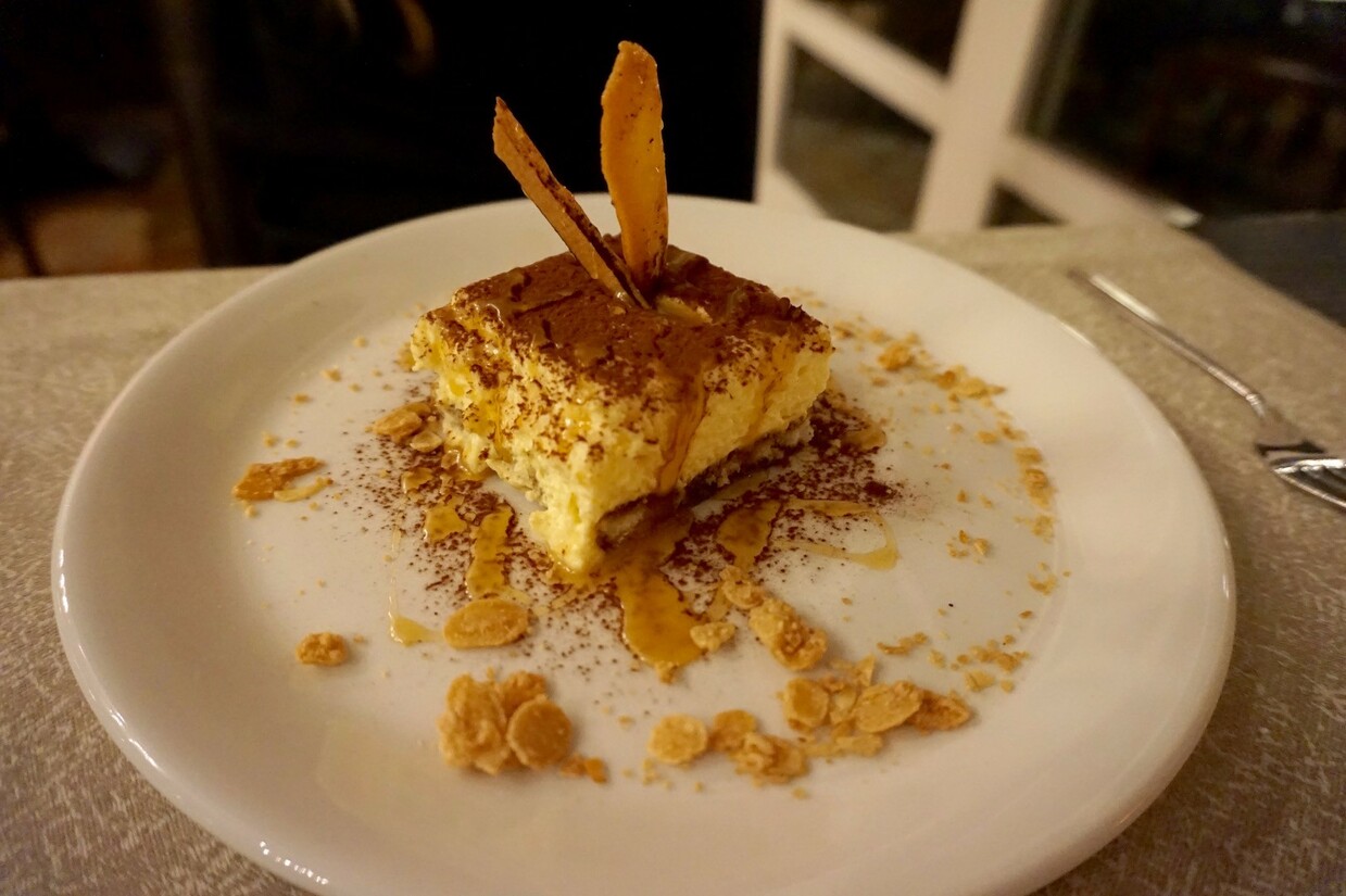 Maar dan het dessert! De kok raakt op stoom, want bij de derde gang zijn we echt om. We likken onze vingers af bij de huisgemaakte tiramisu (Sardinië of niet, Italiaans is het wel) en het variété van kokos (in Costa Rica drink je heerlijke piña colada’s, toch?). Verrukkelijke afsluiters en leuk dat de vijf desserts zo goed overeenkomen met de Blue Zones. Eigenlijk zijn we nu ook heel benieuwd naar de Griekse yoghurt, kaas en het groene thee-ijs… We zijn echter braaf en bestellen snel een kop koffie.