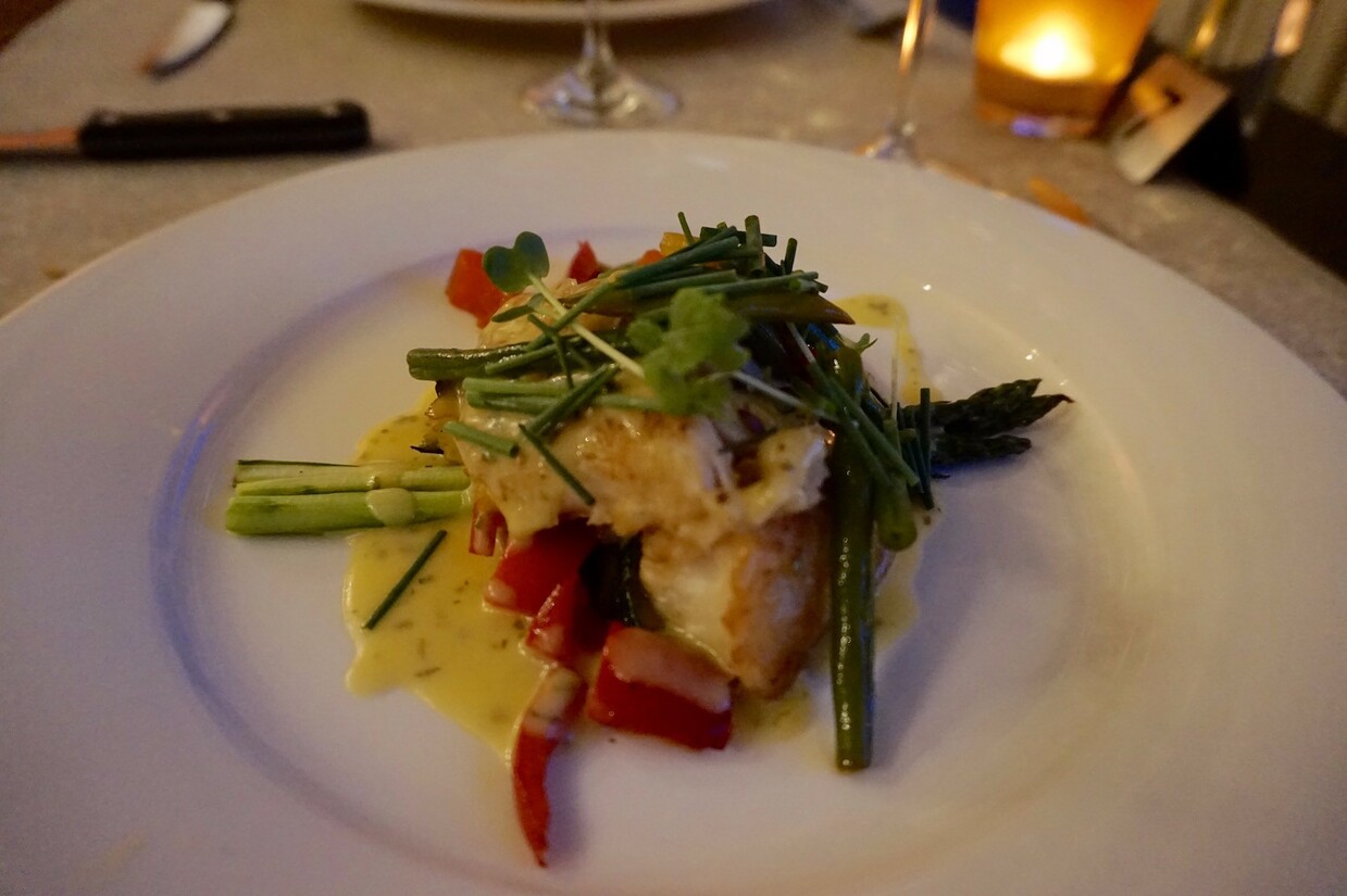 Als hoofdgerecht gaan we voor de ‘nachtvisser’, de vis van de dag, en de gemarineerde biefstuk. Over de bijbehorende Blue Zone tasten we wederom een beetje in het duister, maar de gerechten smaken er niet minder om en de porties zijn niet karig. De kabeljauw is heerlijk en de verse groenten passen perfect bij het geheel. Ook de biefstuk met de zoete aardappelpuree is een goede keuze.