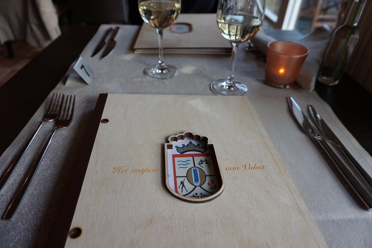 Bij binnenkomst voelen we meteen een huiselijke sfeer. Letterlijk, want het restaurant is gevestigd in het oude woonhuis van familie Van Dijk, eigenaar van Vidaa (en voormalig eigenaar van Elysium). Je kunt eten in de oude woonkamer en in de riante slaapkamer. Wij nemen plaats in de knusse ‘woonkamer’, waar de open haard gezellig brandt. Jammer dat het nog te koud is voor het terras, want dat is prachtig gelegen aan het water. Gaan we onthouden voor de zomer, en dan testen we meteen het houten pontje.
