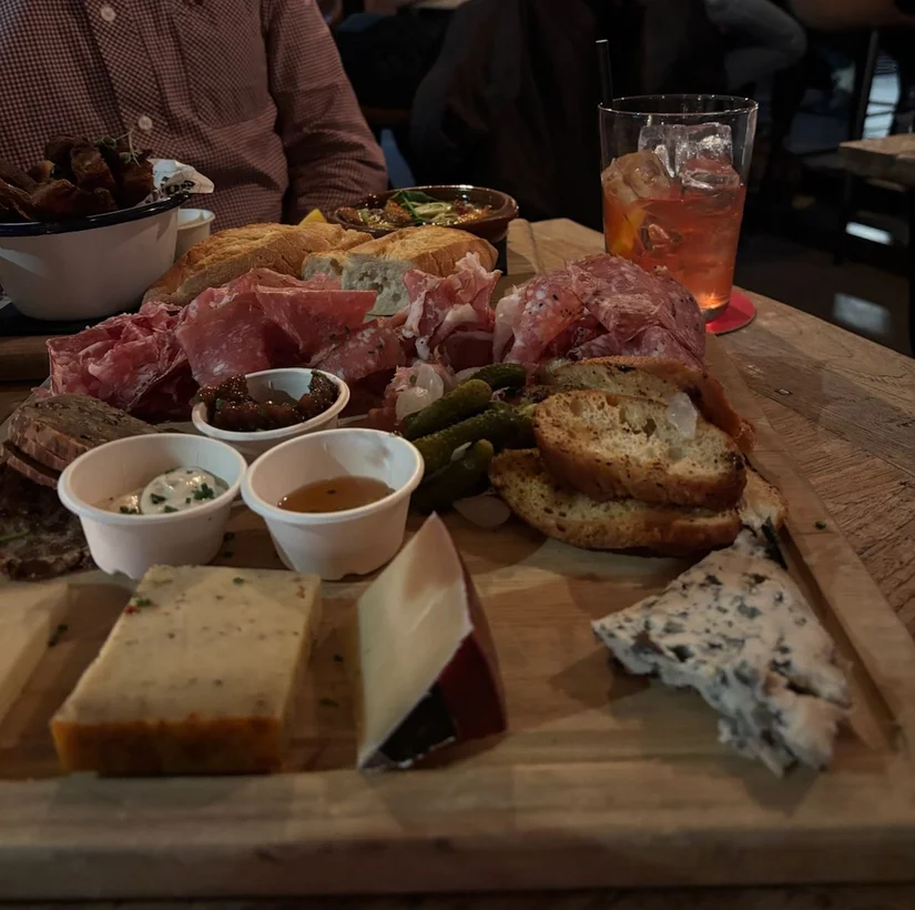 Die borrelfocus zie je direct terug in de opbouw van de kaart. Borrelen staat centraal en dat begint bij een kaas- of charcuterieplateau dat je zelf samenstelt.
