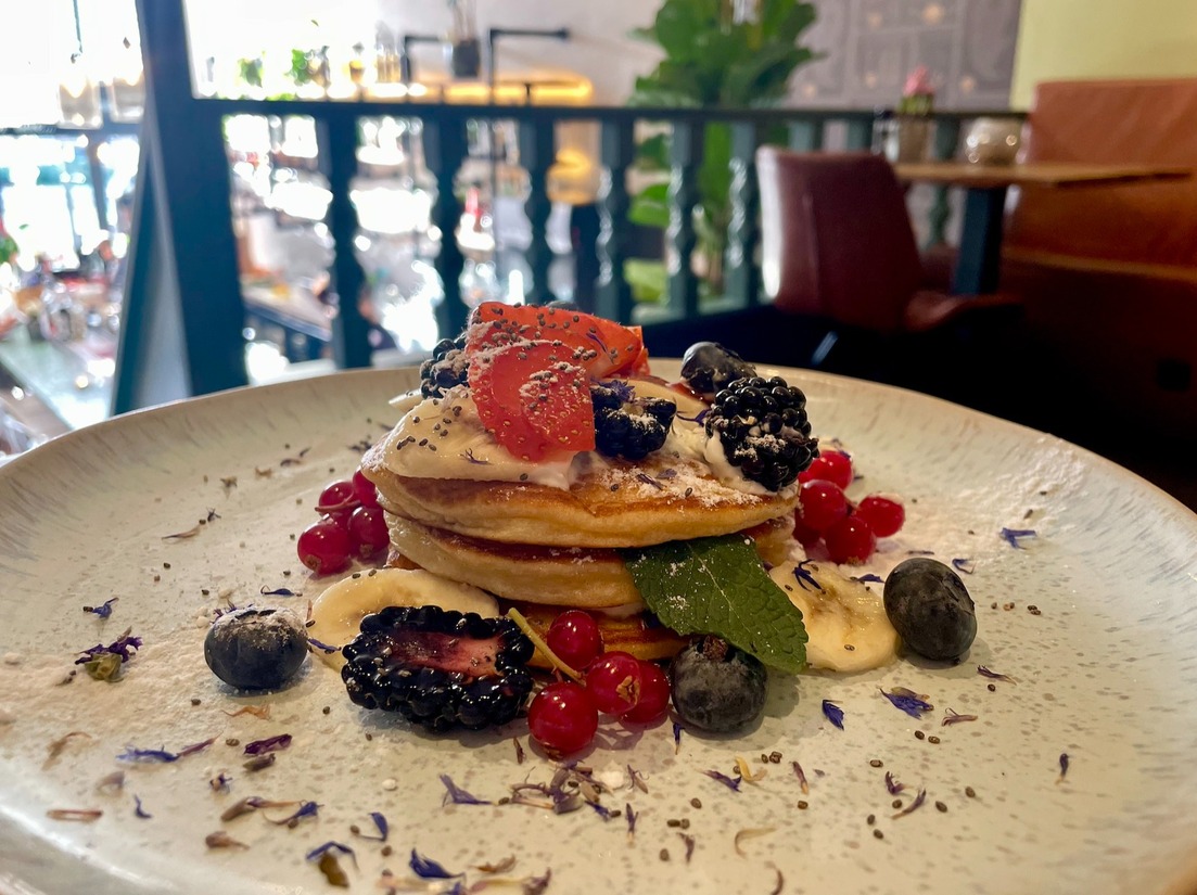 Gelukkig staat er ook wat zoets op de menukaart om deze gezellige middag af te sluiten. De pancakes zijn een lust voor het oog, maar na een paar happen blijkt, niet alleen voor het oog.