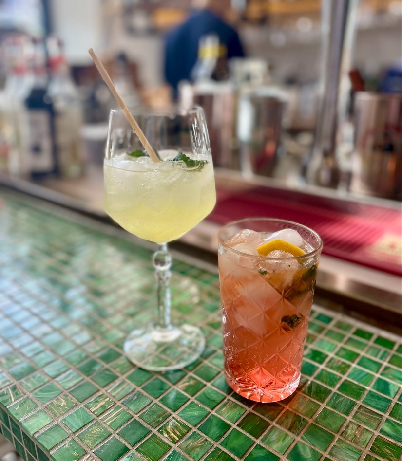 Daarnaast wordt er ook hard gewerkt, want de cocktails gaan er rap doorheen bij de tevreden en soms al wat aangeschoten, lacherige gasten. Niet voor niets kiezen twee vaste bezoekers van de bottomless brunch voor een plekje aan de gezellige smaragdgroene bar met goed zicht op de collega’s die de cocktails shaken.