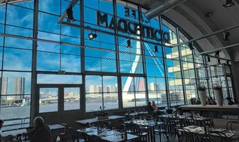 Als je lekker wilt eten, laat je dan vooral niet door de naam Café Rotterdam in de maling nemen. Café Rotterdam is gewoon een heel goed restaurant, met een mooie menukaart, goede service en natuurlijk dat prachtige uitzicht.