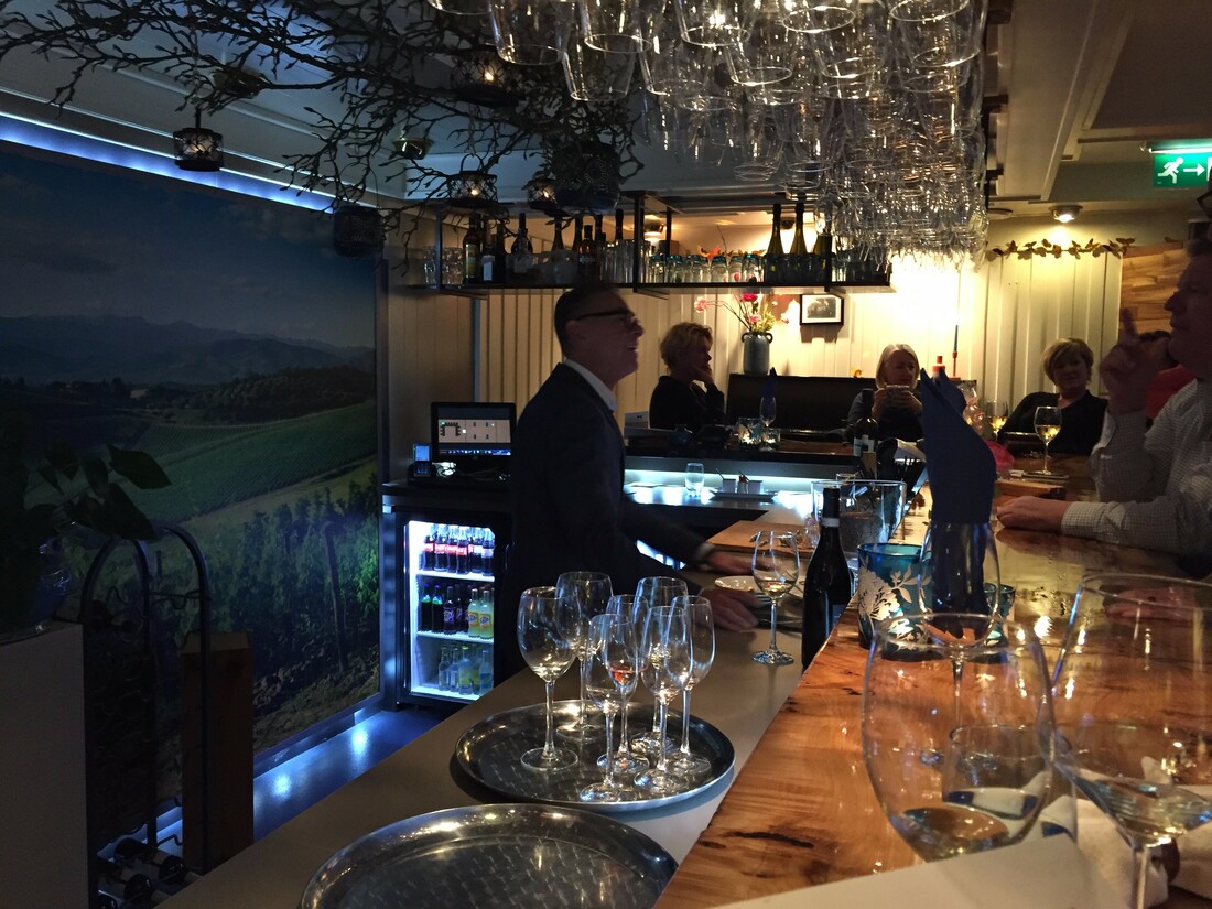 Na vier tastings komt Gerrit uit de keuken. Man man, wat een energie en een vrolijkheid. Hij vraagt of al genoeg hebben. Eigenlijk wel. Maar tegen de geestdrift van Gerrit zijn we niet opgewassen en hij tovert nog twee mooie gerechten uit de keuken.