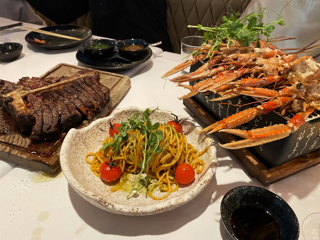 Naast sushi heeft The Harbour Club nog andere luxueuze gerechten te bieden. We krijgen een klassieker geserveerd, de Oosterschelde kreeft. De kreeft is in tweeën gesneden en is niet alleen een plaatje om te zien maar ook om te proeven. Dit seizoensgerecht is fris en zoet. Ook krijgen we een T-bone steak. De steak wordt geserveerd op een houten dienblad en is maar liefst 800 gram, je snijdt het vlees zelf van het bot waar het geleidelijk vanaf valt. Het vlees is mooi rosé van binnen, mals en goed gekruid. Met vlees van deze kwaliteit is verder garnituur of saus niet nodig.