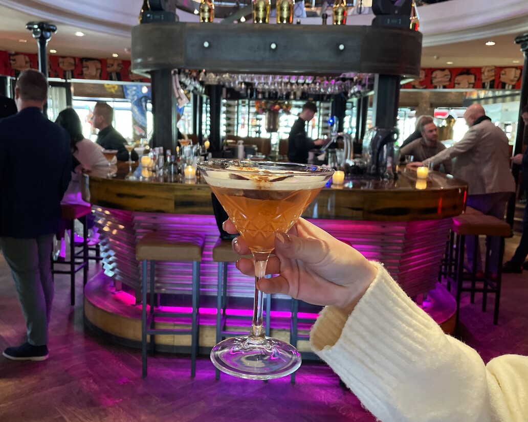 De Buik is uitgenodigd voor de lancering van de nieuwe menukaart. Bij binnenkomst in het statige pand worden we begroet door Odette, een van de gastvrouwen van The Harbour Club. Achter de grote bar midden in de zaal zijn de barmannen druk bezig met het maken van cocktails. We krijgen een nieuwe cocktail geserveerd: 'The Passion Drop', een variatie van de welbekende pornstar martini maar dan met honing en kaneel. Het drankje is zoet met een kruidig randje door de kaneel, maar de klassieke passievrucht smaak uit de pornstar martini herken je goed in de verfrissende cocktail. Een smakelijke binnenkomer waarvan we ons er later in het seizoen ook nog wel één zien drinken op het terras.