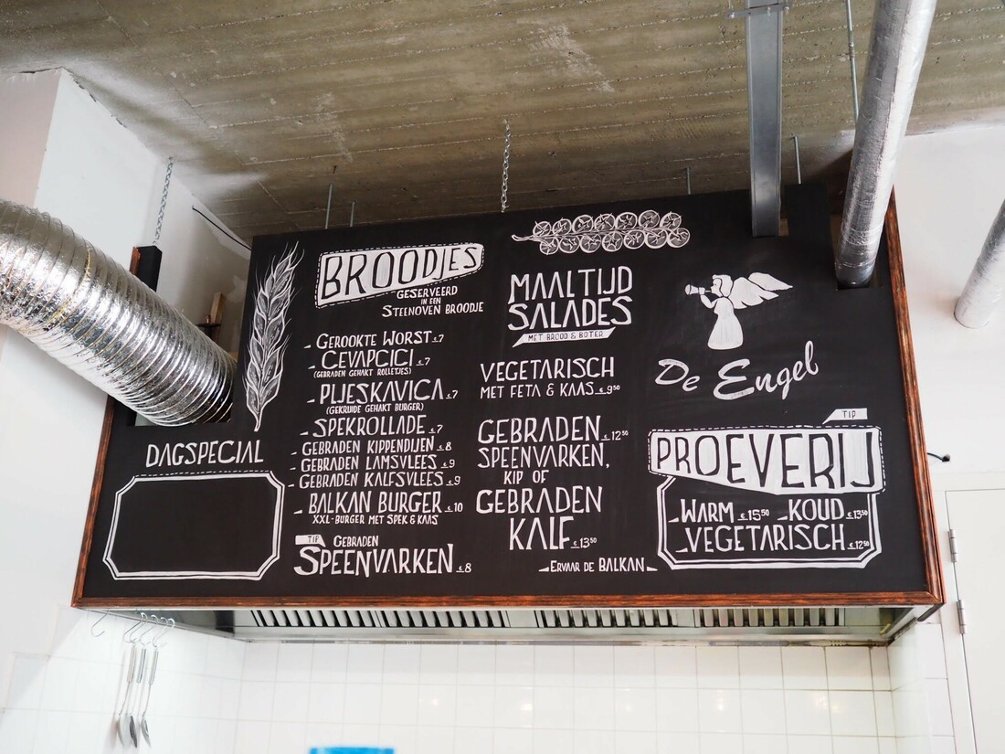 De Engel is een familiebedrijf en dat merk je aan de gemoedelijke sfeer die er hangt. Bij binnenkomst worden we hartelijk ontvangen door eigenaar Milan Jovanovic die ons direct iets te drinken aanbiedt. Onder het genot van een latte macchiato en een verse muntthee vertelt Milan wat meer over De Engel. Zo krijgen we te horen dat het allemaal begonnen is aan de Schiedamseweg, waar zijn vader een cateringbedrijf runt. Drie jaar geleden besloot de familie zich te vestigen in de Markthal, waar ze begonnen met het serveren van broodjes en fingerfood. “Aan de Schiedamseweg kwamen mensen voor een paar kilo vlees of namen ze soms zelfs een heel speenvarken mee naar huis. Het publiek in de Markthal was meer uit op kleinere hapjes, dus toen hebben we het concept iets aangepast.” Familie Jovanovic bleef in de Markthal doen waar ze goed in zijn: het serveren van vleesspecialiteiten. “Onze broodjes staan erom bekend dat ze goed gevuld zijn met vlees. Op een gegeven moment merkten we dat mensen daarvoor terug bleven komen en zagen we steeds meer bekende gezichten.”