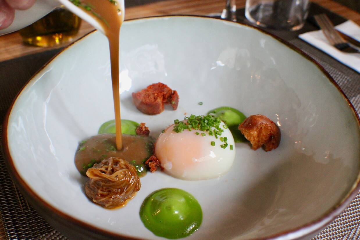 Over de spicy croutons, champignons en het ei wordt aan tafel de soep geschonken. “We twijfelden of hij niet te dik is, maar we doen het gewoon op onze manier. Standaard soep vind je overal.” Een tip van ons: STOP MET TWIJFELEN. We moeten onszelf tegenhouden om niet het hele bord uit te likken. We weten dat er meer komt, maar toch willen we door blijven eten. Deze soep is écht ongekend lekker.