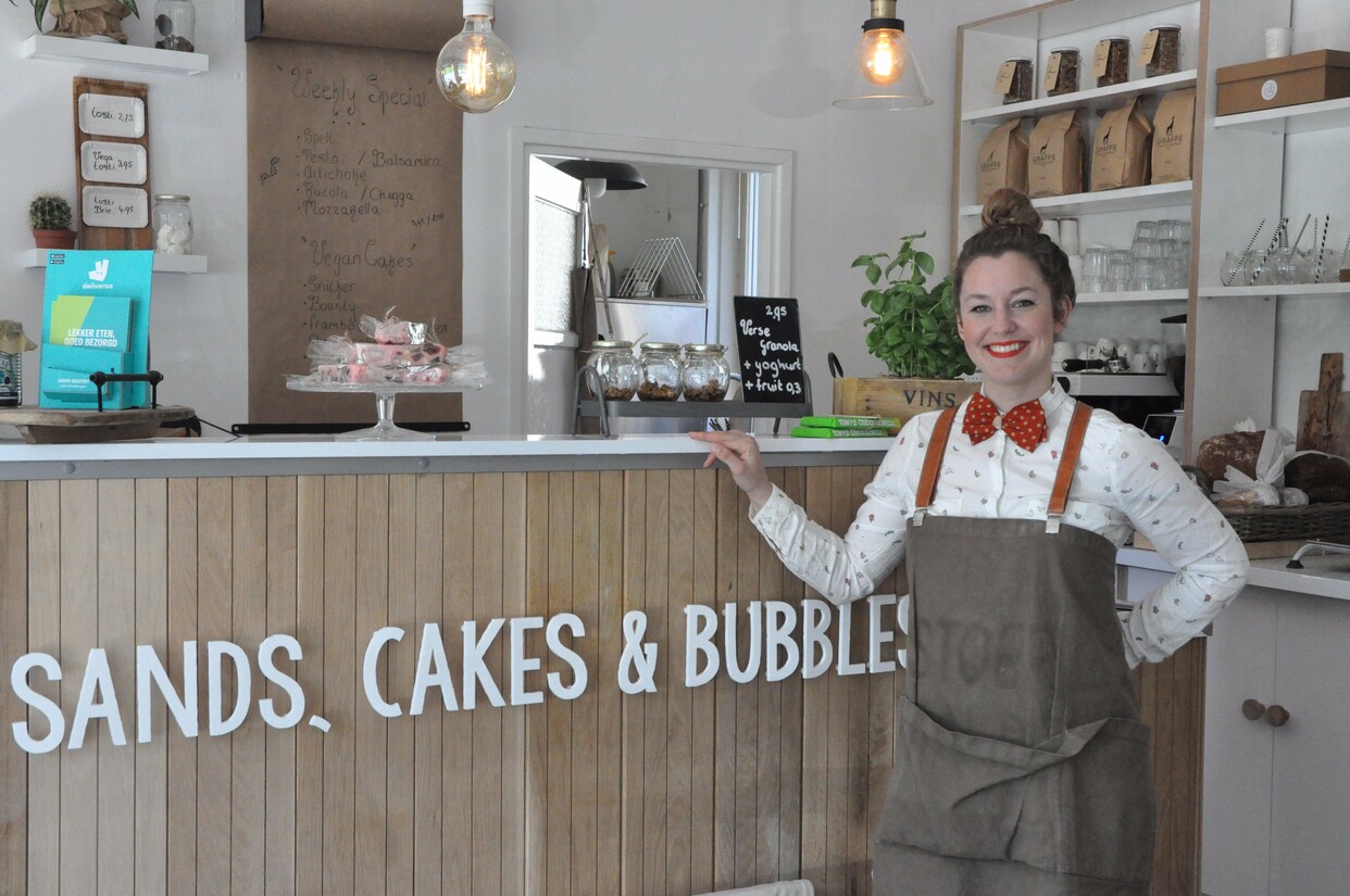 Er was eens, niet ver hier vandaan, een plek waar calorieën even niet bestonden… Waar? Bij Sands, Cakes & Bubbles aan de Oostzeedijk. Geen etagères met poezelige bites, maar zoet en sandwiches met kloten.