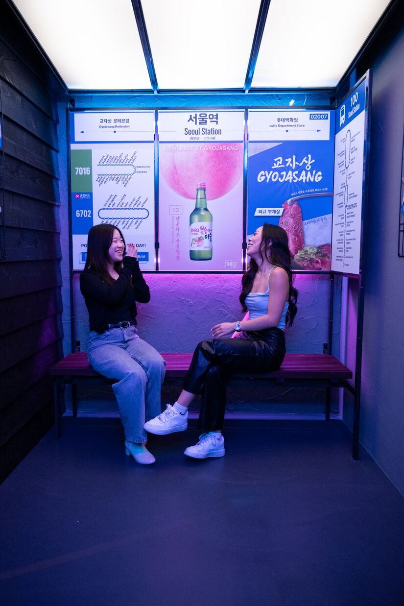 Wie even weg wil van het vuur, kan terecht in de Photo Booth of in het Seoulse bushokje achterin: een knipoog naar de speelse kant van de Koreaanse cultuur.