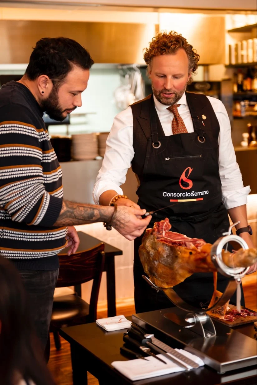 Zo gaat dat, zo hoort dat. Want serranoham, van het achterbeen van een varken, is een eerbetoon aan traditie.