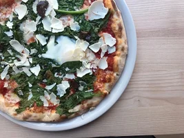 Voor het diner schuiven wij aan in het restaurantgedeelte van de vestiging en kunnen we kiezen uit een tiental pizza’s met uiteenlopende smaken. Klassiekers zoals de margherita en quattro formaggi ontbreken natuurlijk niet, maar onze voorkeur gaat uit naar de wat meer experimentele varianten. Aan te raden is de desempizza met bospaddestoelen en truffel, maar ook de pizza met San Daniële ham, buffelmozzarella en pecorino is erg goed. Als frisse tegenhanger biedt de kaart ook een aantal bijgerechten; denk aan bietensalade, een klassieke tomatensoep, of borrelhappen zoals, uiteraard, het desembrood met smeersels.