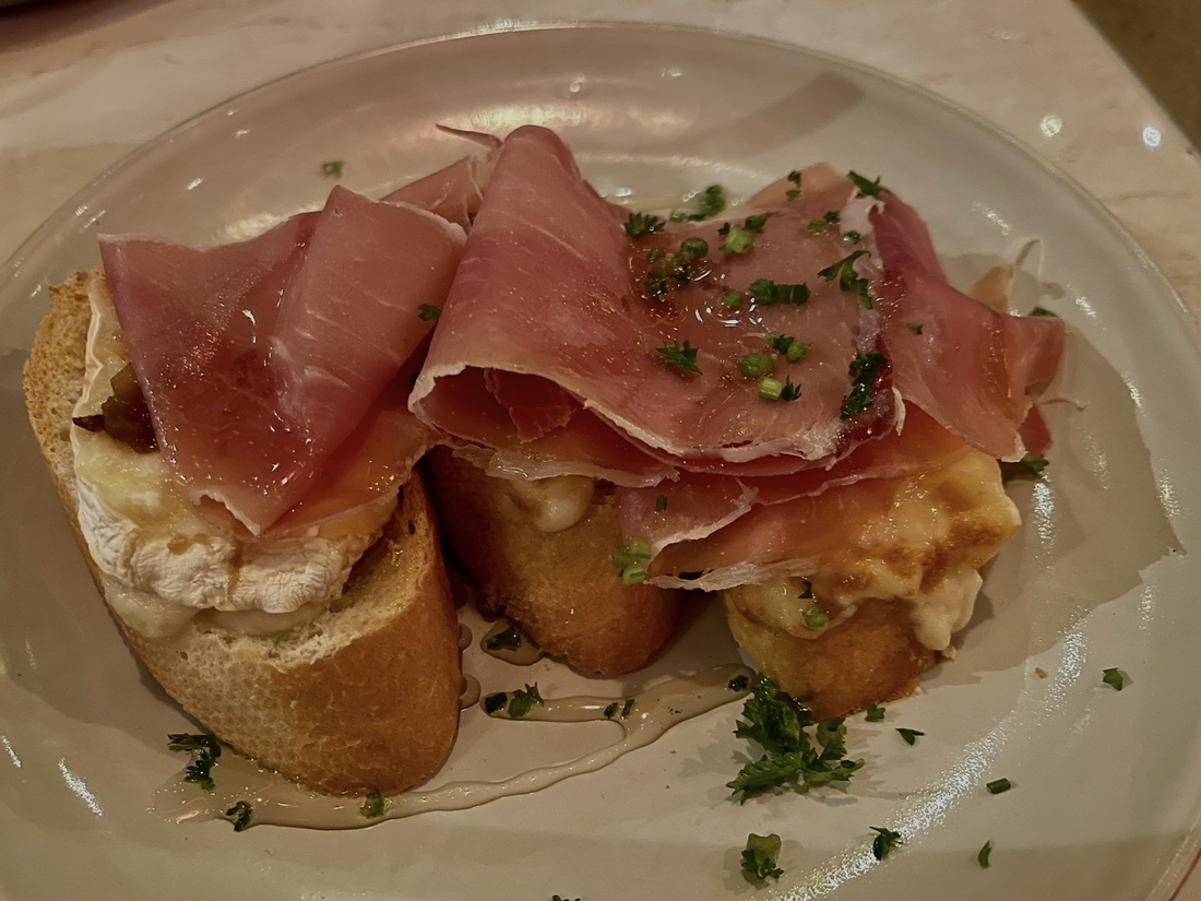 De pinchos zijn rijk belegd met brie, serranoham en een zoete uiencompote. Ook hier is de smaakcombinatie perfect in balans.