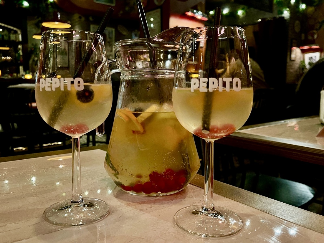 Bij Bar Pepito nemen ze de drankjes net zo serieus als het eten. Er is een uitgebreide cocktailkaart en er staan verschillende speciaalbieren op tap, maar waar Pepito in uitblinkt is sangria. Er is keuze uit drie varianten: klassiek met rode wijn, een zomerse versie met rosé en een bruisende sangria van cava.