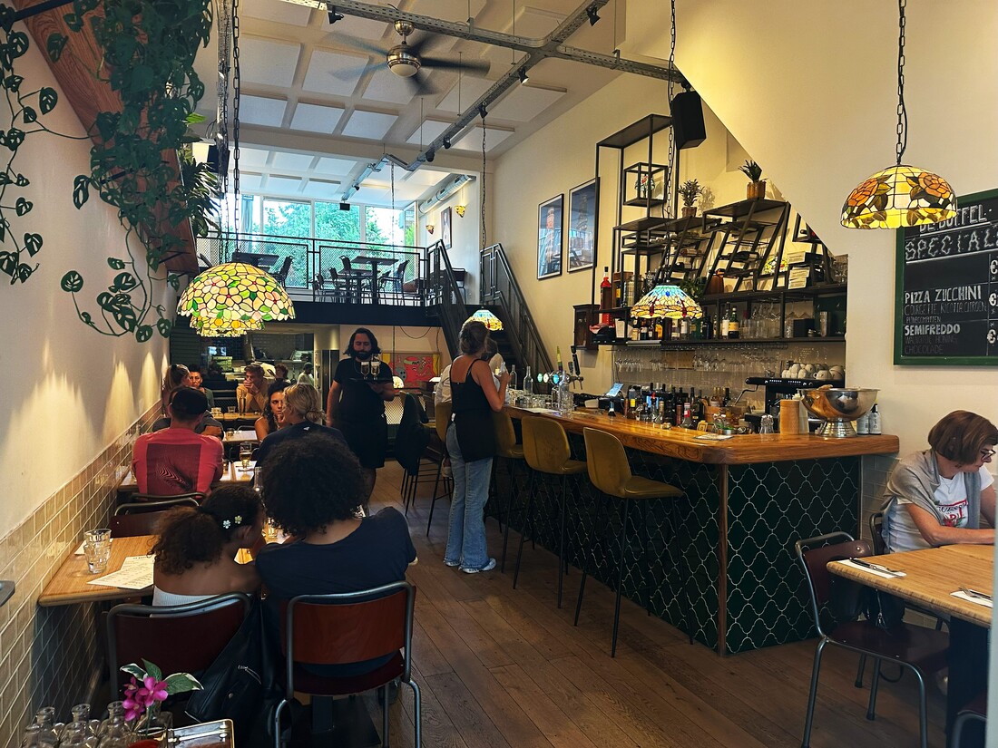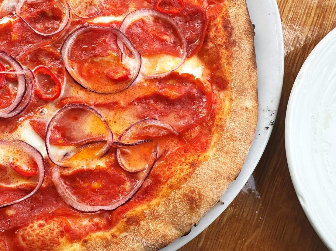 De keuze valt op de pizza Spianata en pizza Marinara. De Spianata heeft een lichte pit door de pikante salami. De pizza oogt wat nat, maar het geheel is dat niet. De tomatensaus van de veganistische Marinara krijgt door de knoflook en oregano op de pizza een diepere smaak. We kiezen voor de optie om burrata toe te voegen. De romigheid van de kaas brengt alle smaken van de pizza bij elkaar.