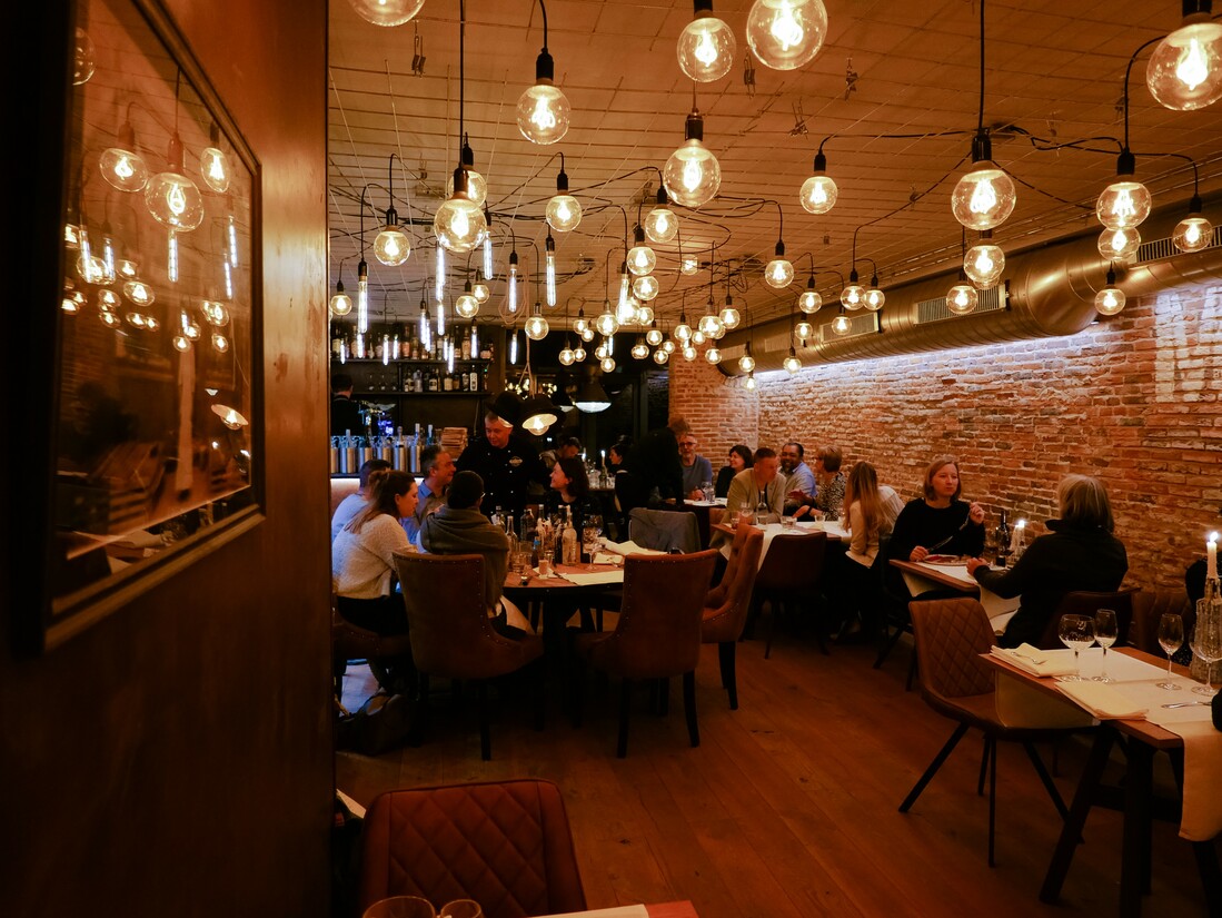 We zijn vanavond aangenaam verrast; waar we een grot vol grote hompen vlees en pullen bier dachten aan te treffen, vonden we verfijning, culinaire ambitie en fantastische wijn-spijscombinaties. Eerlijk, de vegetariër heeft hier niets te zoeken, maar omnivoren worden van harte aangespoord om snel eens binnen te stappen.