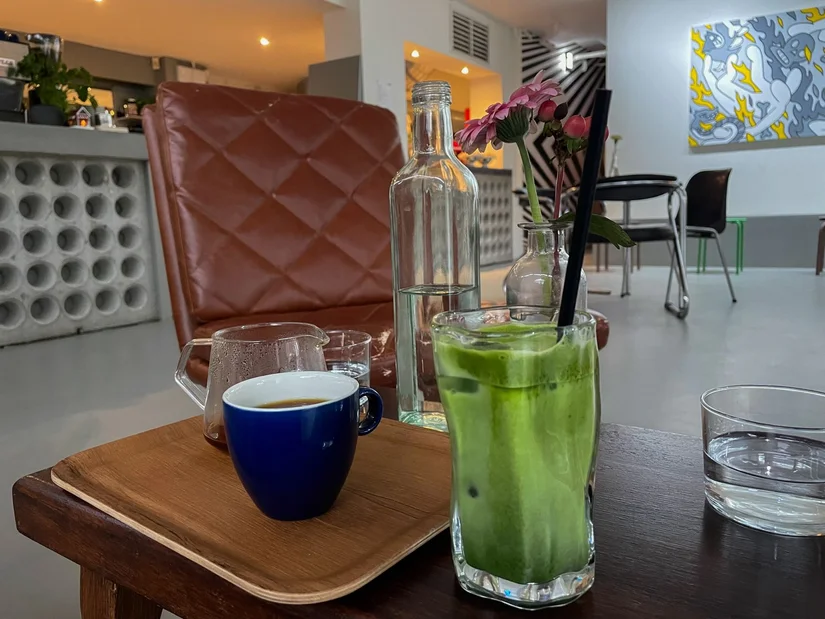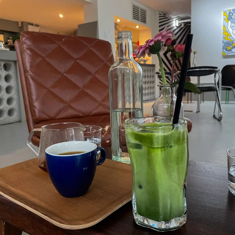 Naast de koffie bestellen we ook nog een matcha. Deze ceremoniële matcha is van het merk Nekohama en is anders dan andere matcha. Zo wordt het matchapoeder gekoeld bewaard om oxidatie te voorkomen. Door oxidatie worden namelijk de smaak, geur, voedingsstoffen en aroma’s aangetast en gaat de kwaliteit achteruit. Door het gekoeld te bewaren, blijven al deze aspecten op de hoogste kwaliteit en dat proef je zeker terug.
