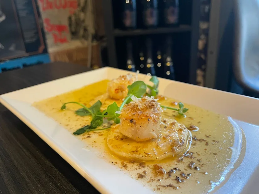 De coquilles in truffelboter geserveerd op een blini waren om je vingers bij af te likken. Hier waren we het meest over te spreken, omdat we onwijze truffelfanaten zijn.