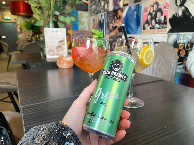 Namelijk blikjes kefir, met water en natuurlijke aroma van appel en aardbei. Een interessant drankje, dit zit namelijk vol probiotica. Goed voor de weerstand, wel zo handig rond deze tijd van het jaar.