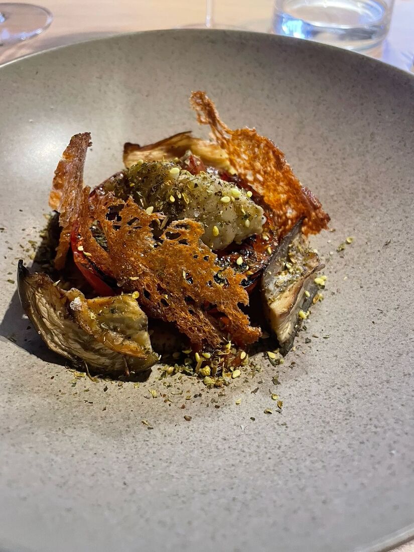 Dan de keuken. Bravoure en precisie kan de nieuwe chef niet ontzegd worden. De wijn-spijscombinatie van coeur de boeuf tomaat, za’atar danst frivool met een Hongaarse Tokaij van Mandolás. Eerst ervaar je de mineraliteit, vervolgens de frisse tonen van de furmint-druif. Frisheid die klettert als een zomerse regenbui op je tong.