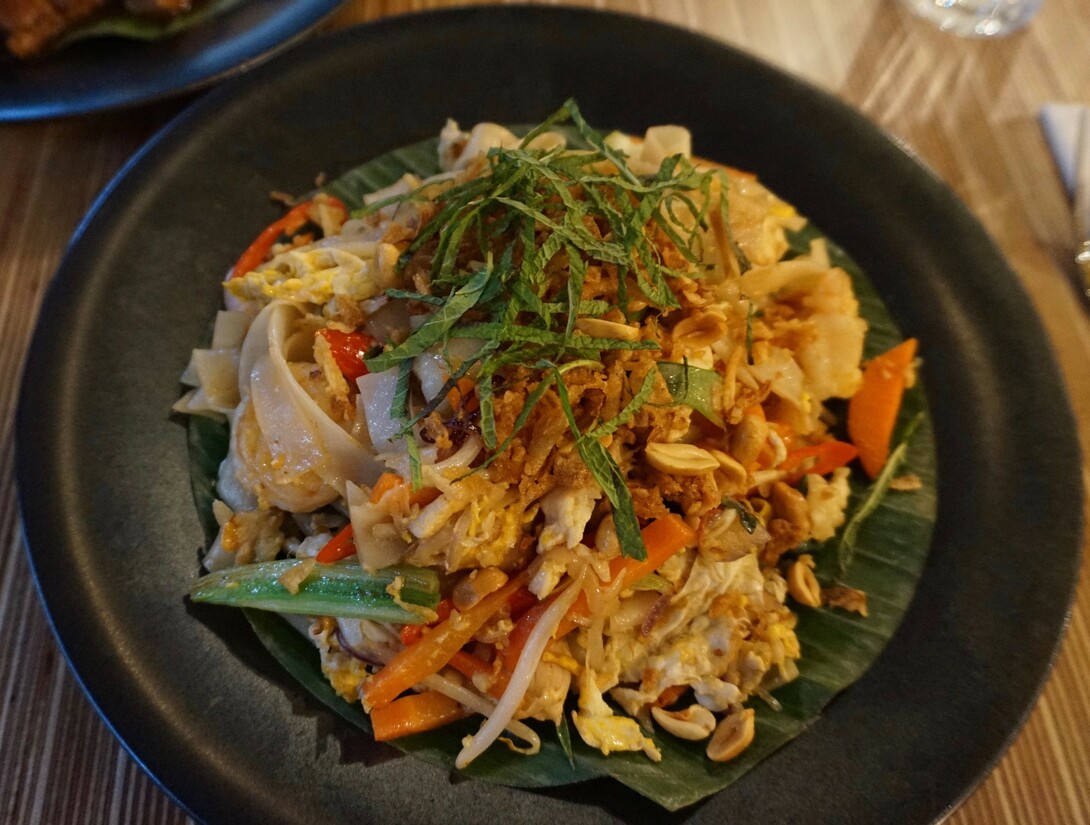 Van China en Japan reizen we door naar Thailand. Ik ga zonder twijfel voor de pad thai en dit bleek een goede keus. Waar je meestal moet kiezen tussen kip, garnalen of tofu, krijg ik het hier gewoon allemaal. Voor vega’s vast ook mogelijk om één ingrediënt te kiezen, ik ben echter dol op alles door elkaar. Deze pad thai is voor mijn Hollandse smaakpapillen prima gekruid, voor anderen kan een schep sambal misschien nog beter zijn. Tafelgenoot houdt het bij Japans en gaat voor de beef teriyaki. Fijn dat Nooch zo gul is met de hoeveelheid vlees, want het is verrukkelijk, heerlijk sappig. Daarnaast pluspunten voor het serveren van flink wat groenten: broccoli, kool en paprika. Dat zien we weleens anders, dus dank voor het denken aan onze vitaminen. De hoofdgerechten worden overigens geserveerd op bananenblad, dat het altijd zo leuk doet op foto’s (#loveit).
