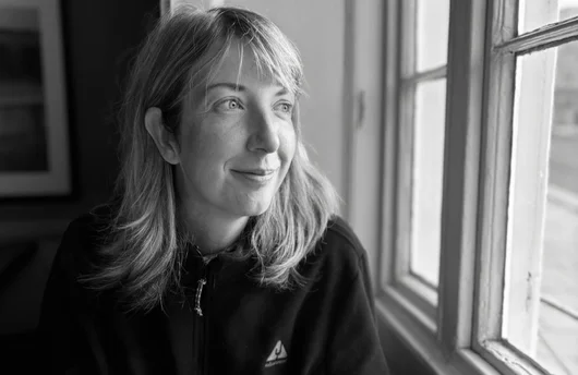 We nemen plaats aan een raam dat uitkijkt op het terras. Ondanks de kou zijn buiten drie tafels bezet. Over de terrasstoelen hangen rode fleecekleden en schapenvachten. De tuinhaard wordt net aangestoken en een groep vrienden neemt plaats aan de tafel ernaast. Het oogt als wintersport, op loopafstand van de stad.