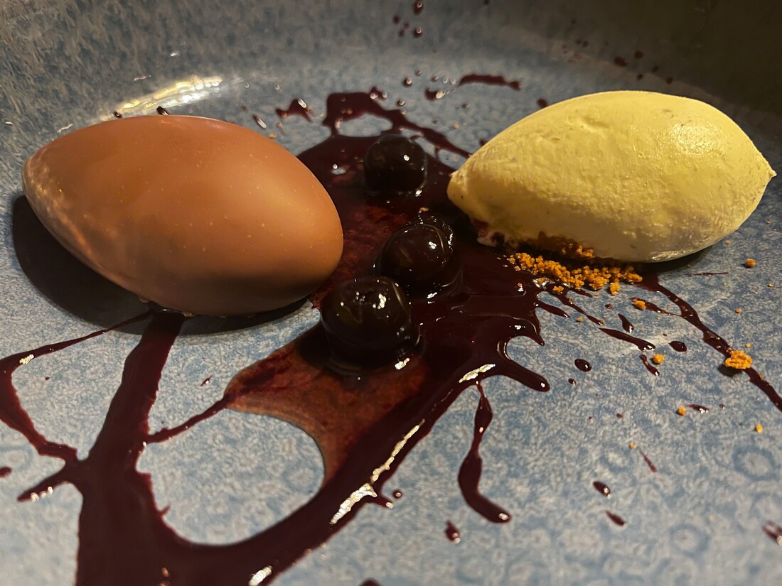 Toch is er nog ruimte voor een toetje. Met drie desserts op de kaart, krijgen we gelukkig geen keuzestress. De combinatie sinaasappeltiramisu met Licor 43 intrigeert direct. Mijn tafelgenoot gaat voor veilig met de chocolademousse met vanille-ijs en amarena-kersen. De bolletjes vanille-ijs en chocolademousse zien er zo glad uit, dat het bijna zonde is om te starten met eten. De tiramisu wordt gepresenteerd in een glas. Leuk detail: er zit een pipetje met Licor 43 in. Je kunt dus zelf kiezen of en hoeveel likeur je in je dessert verwerkt. Ik twijfel geen seconde en knijp het hele pipetje leeg. Dat zorgt voor een licht vleugje alcohol wat goed past bij de sinaasappelsmaak van de tiramisu. De pistachenootjes geven het geheel een lekkere bite. Een verrassende, maar lekkere combinatie en de perfecte afsluiter van het diner. We keren voldaan huiswaarts, maar schuiven zeker nog eens aan bij Nostra. Voor de tonijn tataki óf om de high wine te proberen.