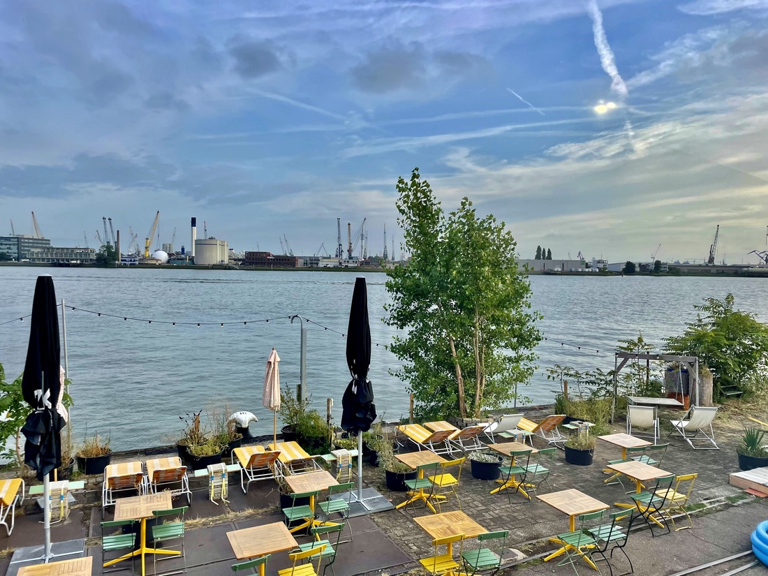 Zodra we de trap oplopen naar het grote terras, bevinden we ons in een gezellige Zuid-Amerikaanse sfeer met een inrichting vol gekleurde vlaggetjes en krijgen we een erg warm welkom door Maria en haar collega’s. Met uitzicht op de Maas ontsnap je hier even uit de drukte van de stad.