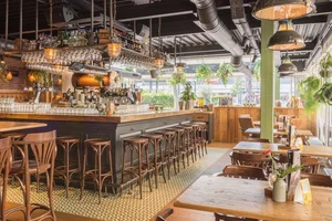 Even geleden schoof het restaurant een huisnummer op. In de plint van het winkelcentrum kwam een plek van de buren vrij. Jacco greep de kans en restylede zijn zaak meteen grondig. Het resultaat is een eigentijdse inrichting zoals je die bijvoorbeeld ook vindt in zaken op de Witte de With. Otto Hahn kan er weer jaren mee vooruit. In een hoek staat een klein podium. Jacco programmeert geregeld bandjes en haalt bekende volkszangers naar Ommoord. Wolter Kroes zong hier eens. Otto Hahn hield geen dak meer over.