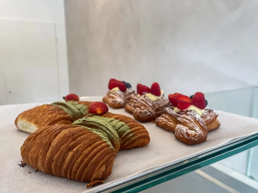 Ook de klassiekers vind je bij SOKO, zoals de croissants, pain au chocolat en de fruit Danish. Vooral met allergenen is dit erg fijn, want dat zijn vaak de veilige opties. Je ziet hier ook echt het Franse terugkomen: veel boter, luchtigheid en niet overdreven zoet.